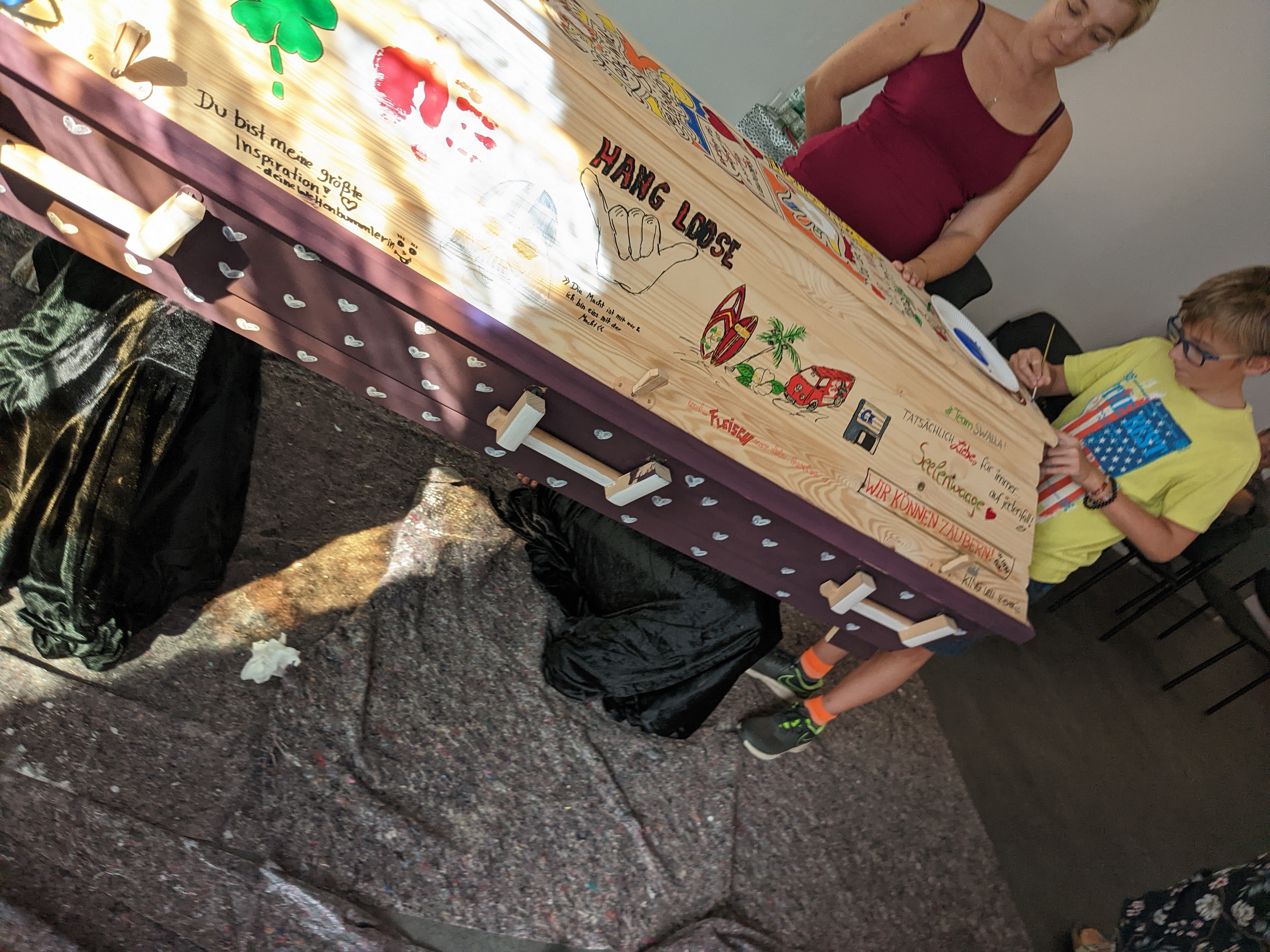 Jeder malt etwas auf, was er mit Thomas verbindet oder was Thomas einfach toll fand.