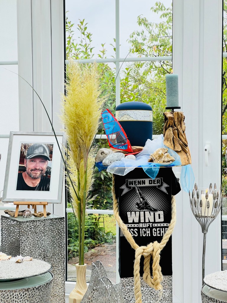 Ich habe etwas länger darüber nachdenken müssen, wie groß wir die Feier gestalten wollen. Aber am Ende hab ich gedacht, dass sich wahrscheinlich viele von Thomas verabschieden wollen, die in letzter Zeit Kontakt zu ihm hatten. Das waren Arbeitskollegen, das waren Freunde und Nachbarn, die Menschen aus Vereinen oder Menschen aus dem Gesundheitswesen die ihn lange begleitet haben. Auch meine Arbeitskollegen wollten kommen. Manche kannten Thomas, und manche kannten ihn nur aus meinen Erzählungen. Der Kreis wurde jetzt schon ziemlich groß und ich habe nicht angefangen alte Freunde einzuladen mit denen Thomas lange nicht in Kontakt stand. Auch wenn diese Menschen darüber etwas traurig waren.