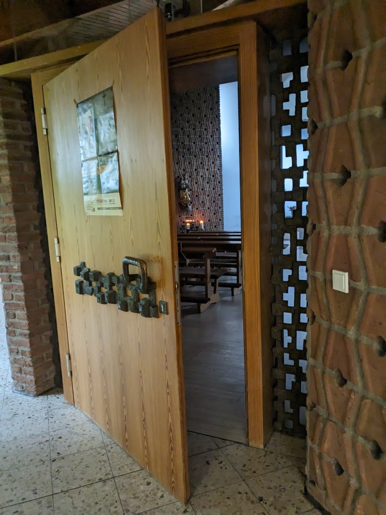 Heute nach dem Nachtdienst kaufe ich mir in der Cafeteria noch einen Kaffee und ein Brötchen. Ich geh an der geöffneten Kapelle vorbei.